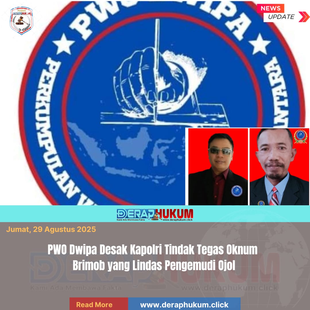 Feri Rusdiono, Ketua Umum Dan Agus Irfani Wakil sekretaris Persatuan Wartawan Online (PWO) Dwipa, meminta kepada Kapolri untuk menindak tegas pelaku oknum Brimob yang terlibat dalam insiden tersebut. “Kami mendesak agar pihak kepolisian memberikan keadilan bagi keluarga pengemudi ojol yang menjadi korban. Tindakan yang dilakukan oleh oknum tersebut tidak dapat dibenarkan dan harus ada sanksi yang tegas,” ujarnya.
