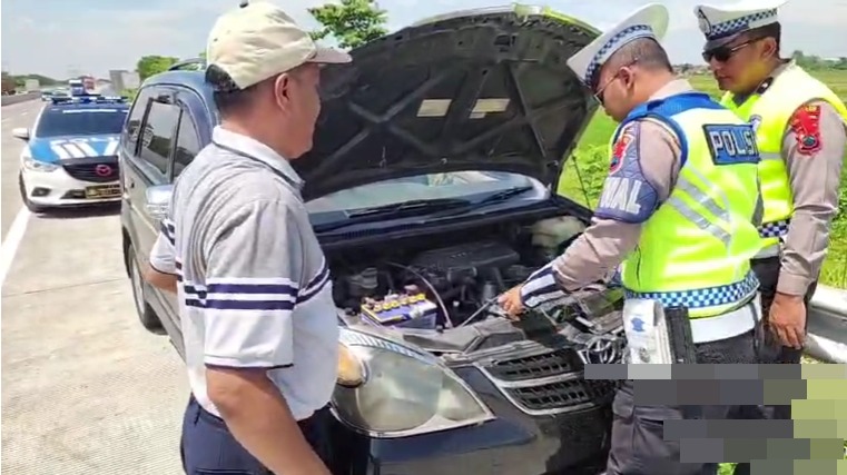 Mengetahui adanya warga yang membutuhkan bantuan, petugas langsung menepi dan melakukan pengecekan. Diketahui, radiator mobil tersebut mengalami gangguan fungsi yang menyebabkan suhu mesin meningkat drastis (overheat).