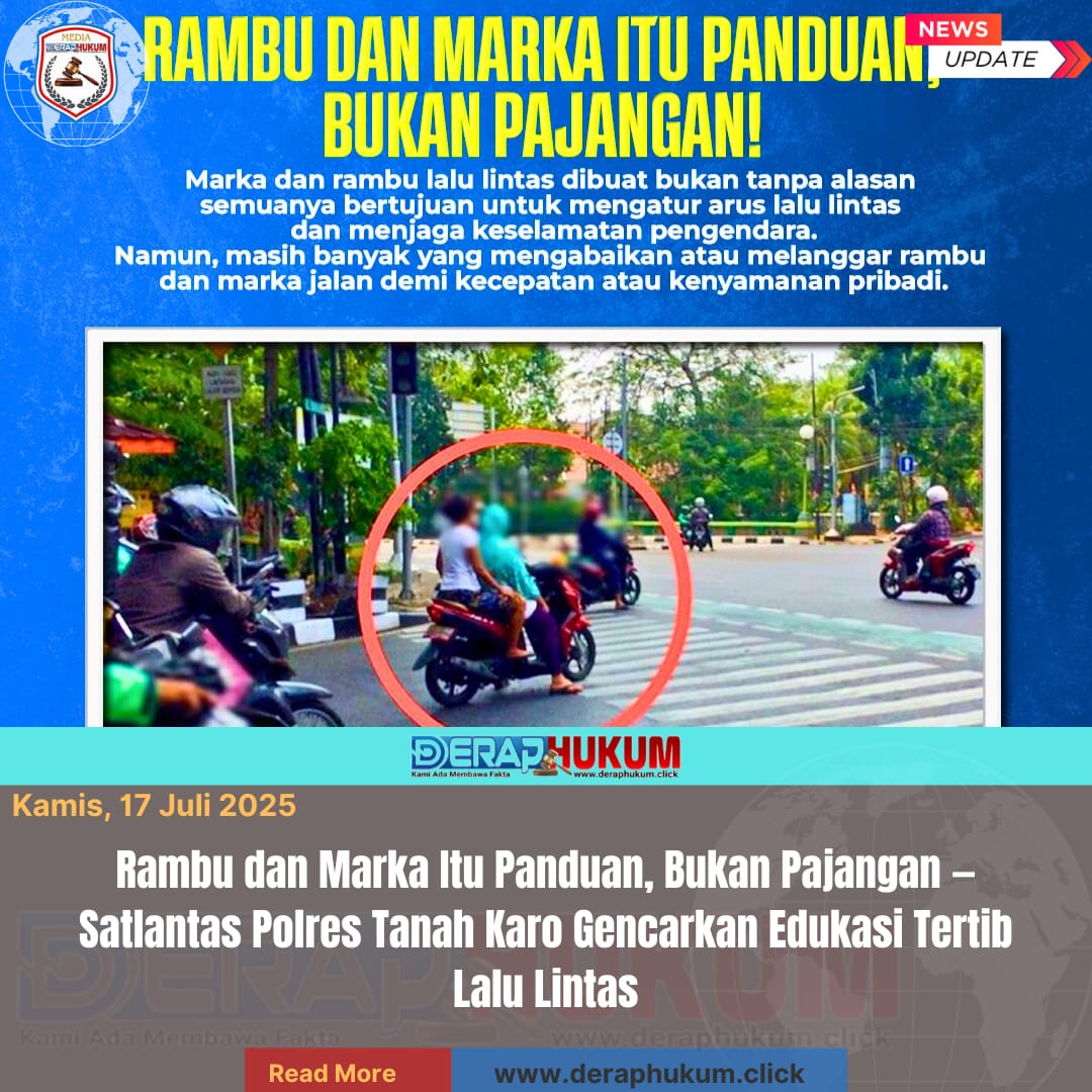 KARO, Sumatra Utara | Deraphukum.click | Dalam rangka Operasi Patuh Toba 2025, Satuan Lalu Lintas (Satlantas) Polres Tanah Karo kembali mengingatkan pentingnya mematuhi rambu dan marka jalan sebagai panduan keselamatan berlalu lintas.