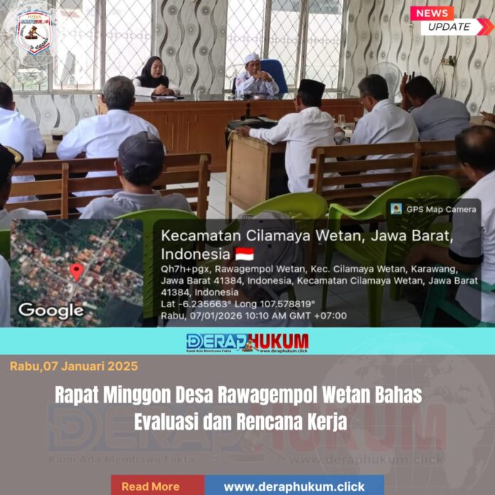 Karawang,Jawa Barat | deraphukum.click |– Pemerintah Desa Rawagempol Wetan, Kecamatan Cilamaya Wetan, Kabupaten Karawang, melaksanakan Rapat Minggon Desa pada Rabu, 07 Januari 2026, bertempat di aula kantor desa setempat.