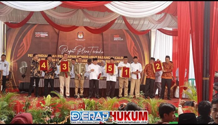 Inilah nomor urut Pasangan calon walikota dan wakil walikota Sungai Penuh tahun 2024, berdasarkan pengundian :