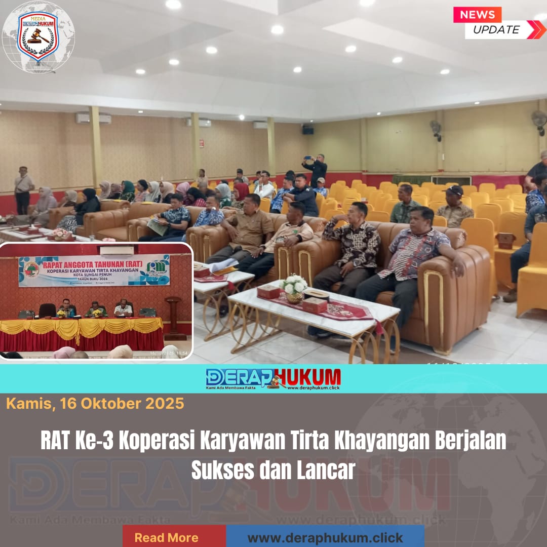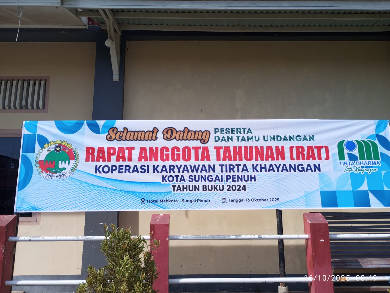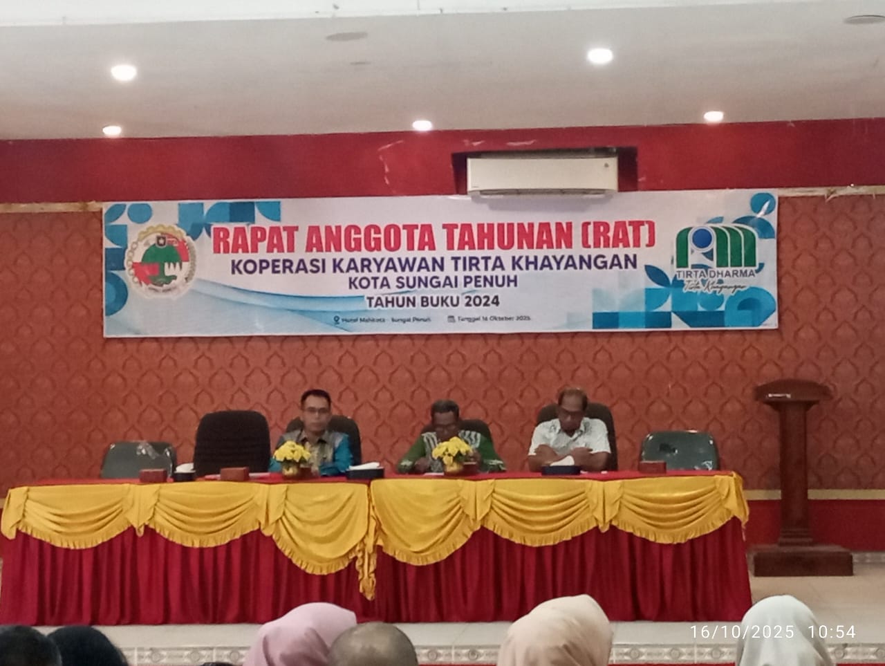 Sungai Penuh, Jambi | DerapHukum.click | 16 Oktober 2025, Koperasi Karyawan Tirta Khayangan sukses menggelar Rapat Anggota Tahunan (RAT) ke-3 Tahun Buku 2024 di Hotel Mahkota, Sungai Penuh, pada Selasa (16/10/2025).
