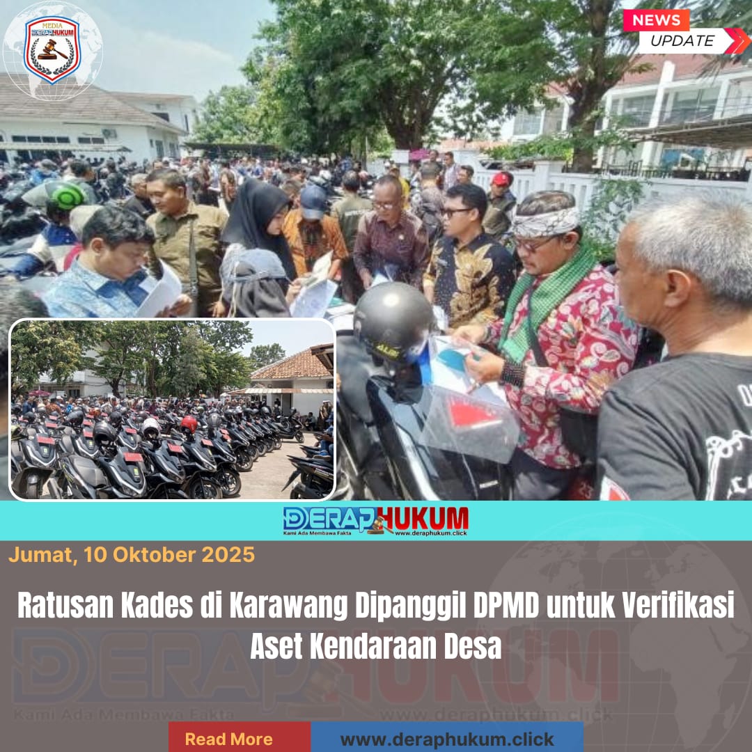 KARAWANG, Jawa Barat | Deraphukum.click | Ratusan kepala desa di Kabupaten Karawang dipanggil ke Kantor Dinas Pemberdayaan Masyarakat dan Desa (DPMD) pada Kamis (9/10/2025). Pemanggilan tersebut dilakukan dalam rangka pendataan dan verifikasi aset kendaraan operasional desa yang dibeli menggunakan Dana Bagi Hasil Pajak dan Retribusi Daerah (DBH PDRD) Tahun Anggaran 2025.