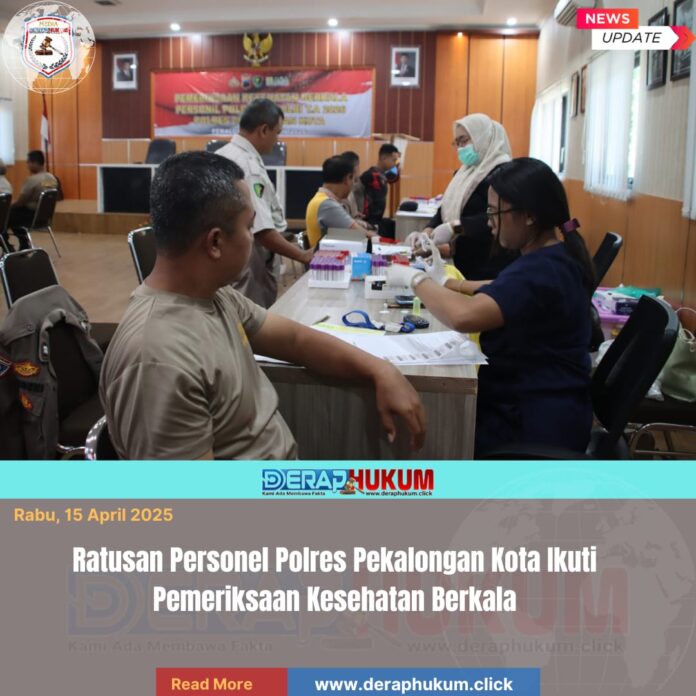 Pekalongan Kota, | Deraphukum.click | Polres Pekalongan Kota – Polda Jateng – Ratusan personel Polres Pekalongan Kota bersama sejumlah anggota dari polres jajaran mengikuti kegiatan pemeriksaan kesehatan berkala (Rikkesla) yang digelar di Aula Wicaksana Laghawa Mapolres Pekalongan Kota, Selasa (14/04/2026).