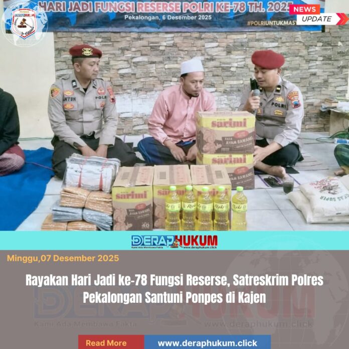 Pekalongan,Jawa Tengah | Deraphukum.click | Polres Pekalongan – Polda Jateng – Satreskrim Polres Pekalongan tidak hanya fokus pada penindakan hukum, tetapi juga menunjukkan kepedulian sosial. Dalam rangka memperingati Hari Jadi Fungsi Reserse yang ke-78 pada tahun 2025, Satreskrim menggelar kegiatan bakti sosial, Sabtu (6/12/2025).