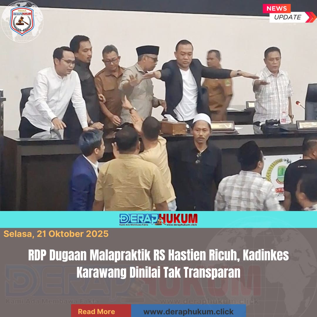 Rapat Dengar Pendapat (RDP) di Gedung Pemkab Karawang terkait dugaan malapraktik di Rumah Sakit Hastien berujung ricuh pada Senin (20/10/2025). Forum resmi yang difasilitasi oleh DPRD Kabupaten Karawang itu awalnya berlangsung tertib, namun suasana berubah panas ketika Kepala Dinas Kesehatan (Kadinkes) Karawang, Endang Suryadi, memberikan penjelasan hasil investigasi yang dianggap tidak konsisten.