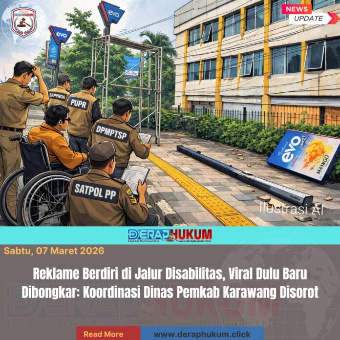 Reklame Berdiri di Jalur Disabilitas, Viral Dulu Baru Dibongkar: Koordinasi Dinas Pemkab Karawang Disorot