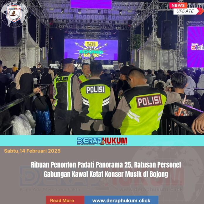 Pekalongan,Jawa Tengah | Deraphukum.click | Polres Pekalongan – Polda Jateng – Ribuan pasang mata saksi kemeriahan konser musik di kawasan Panorama 25 Bojong, Kabupaten Pekalongan, Jumat (13/02/2026) malam. Kehadiran grup musik hip-hop dangdut fenomenal asal Yogyakarta, NDX AKA, serta rapper Ecko Show dari Gorontalo, sukses membius sekitar 3.500 penonton yang memadati lokasi sejak sore hari.