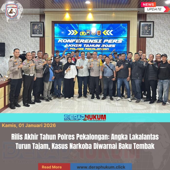 Pekalongan, Jawa Tengah | DerapHukum.click | Polres Pekalongan Polda Jateng – Polres Pekalongan menggelar refleksi kinerja tahunan dalam acara Release Akhir Tahun 2025 di aula Mapolres Pekalongan, Rabu (31/12/2025). Dalam paparannya, Polres Pekalongan mencatatkan keberhasilan signifikan dalam menekan angka kecelakaan lalu lintas, meski tantangan di sektor kriminalitas masih dinamis.