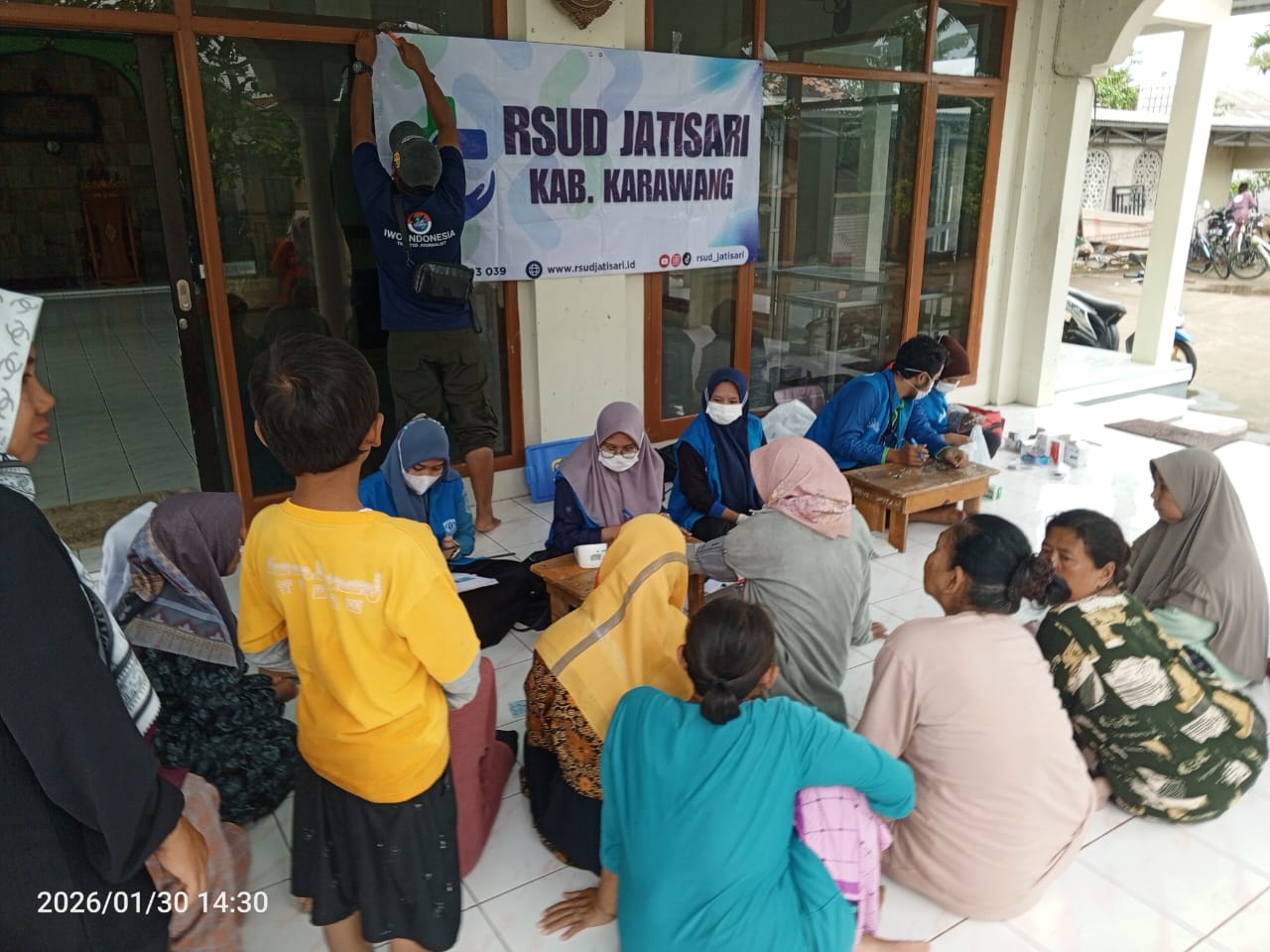 Tim medis RSUD Jatisari bekerja sama dengan Puskesmas Pembantu (Pustu) Krajan dan Puskesmas Sukatani, serta didukung oleh ibu-ibu kader kesehatan, Linmas, dan tokoh masyarakat setempat.