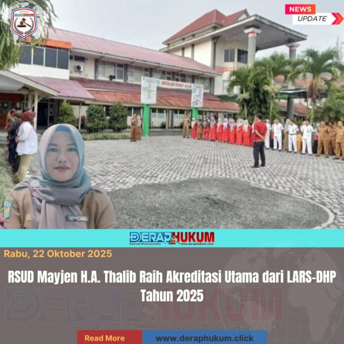 Sungai Penuh, Jambi | Deraphukum.click | Rumah Sakit Umum Daerah (RSUD) Mayjen H.A. Thalib Sungai Penuh sukses meraih status Akreditasi Utama (Bintang Empat) dari Lembaga Akreditasi Rumah Sakit Damar Husada Paripurna (LARS-DHP) pada tahun 2025. Pencapaian ini diraih di bawah kepemimpinan Direktur RSUD, Deby Zartika, S.Kep., M.Biomed.