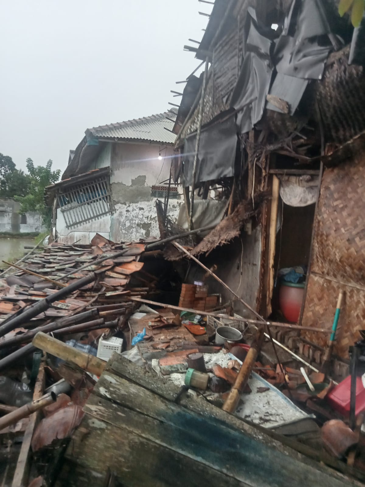 “Kejadiannya pas hujan deras, rumah langsung ambruk ke belakang. Untung penghuninya sudah keluar lebih dulu,” ujar seorang warga setempat.
