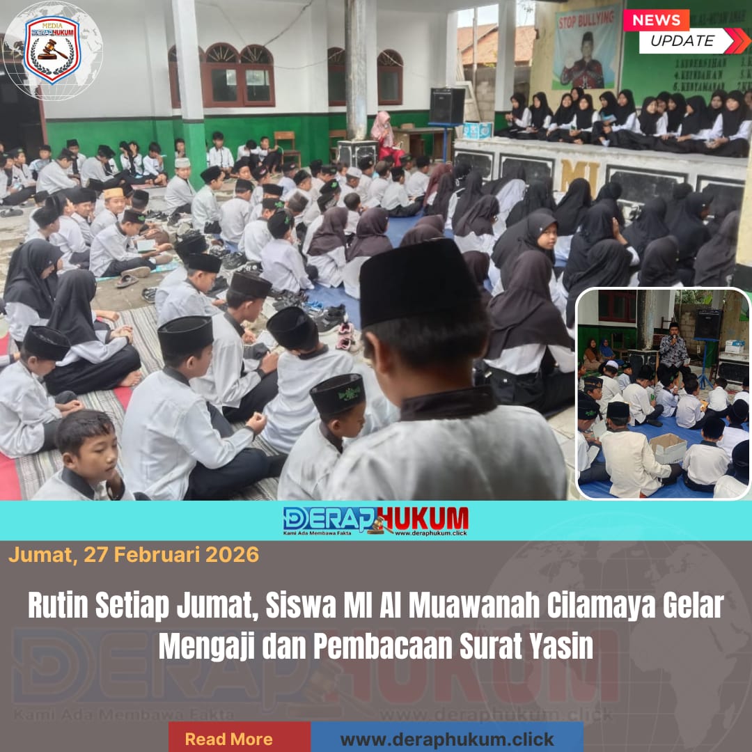 Karawang, Jawa Barat | Deraphukum.click | Kegiatan mengaji dan pembacaan Surat Yasin rutin dilaksanakan setiap hari Jumat di MI Al Muawanah yang berlokasi di Dusun Pasar, Desa Cilamaya, Kecamatan Cilamaya Wetan, Kabupaten Karawang.