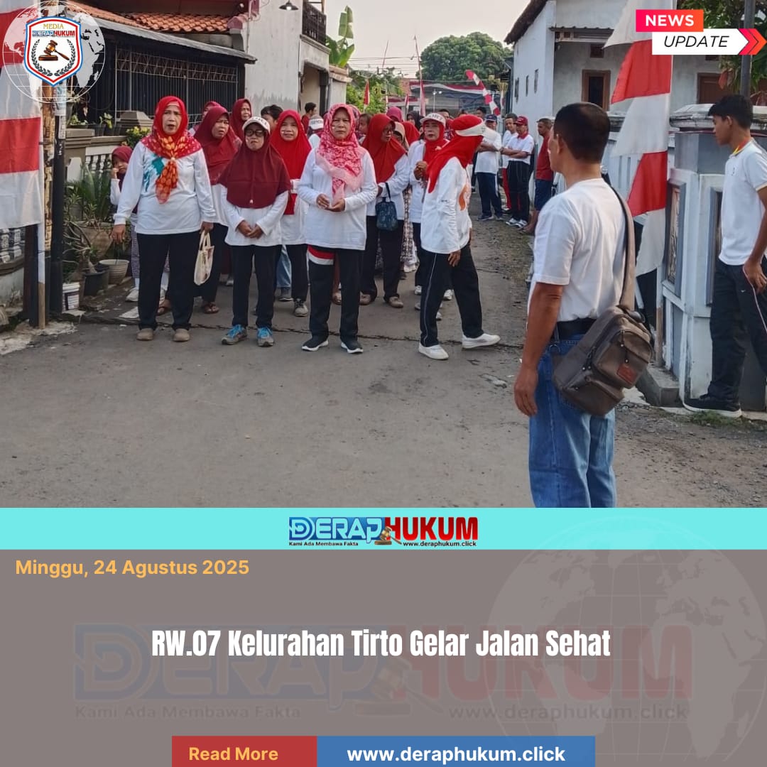 Pekalongan,Jawa Tengah | deraphukum.click | Dalam rangka memeriahkan HUT Kemerdekaan RI ke- 80 warga RW 07 Kelurahan Tirto Kota Pekalongan melaksanakan kegiatan jalan sehat pada Minggu ( 24/8).