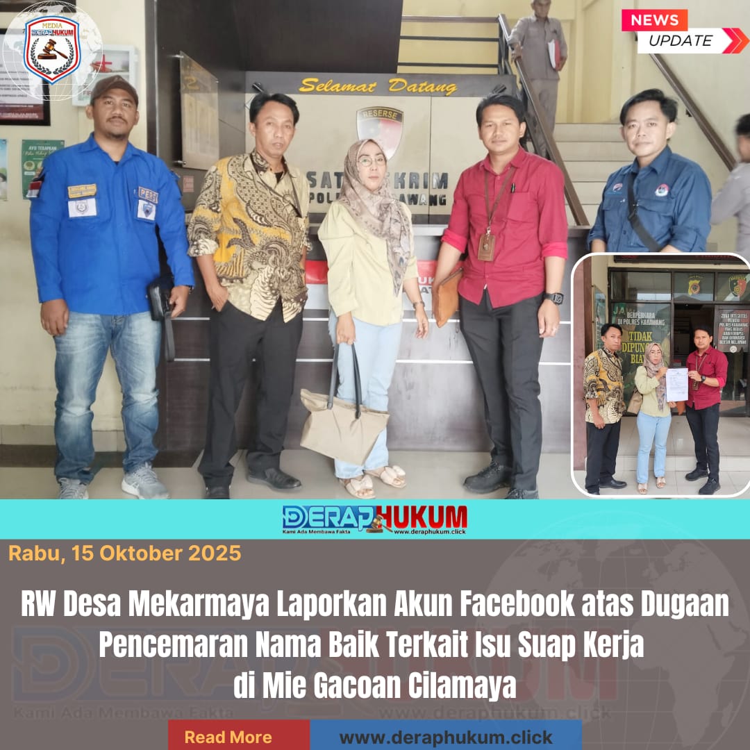 Ketua Rukun Warga (RW) Desa Mekarmaya, Kecamatan Cilamaya Wetan, Kabupaten Karawang, berinisial HA, secara resmi melaporkan akun media sosial Facebook berinisial KN ke Kepolisian Resor (Polres) Karawang. Laporan tersebut diajukan atas dugaan tindak pidana pencemaran nama baik melalui media elektronik, sebagaimana diatur dalam Undang-Undang Nomor 19 Tahun 2016 tentang Perubahan atas Undang-Undang Nomor 11 Tahun 2008 tentang Informasi dan Transaksi Elektronik (UU ITE).