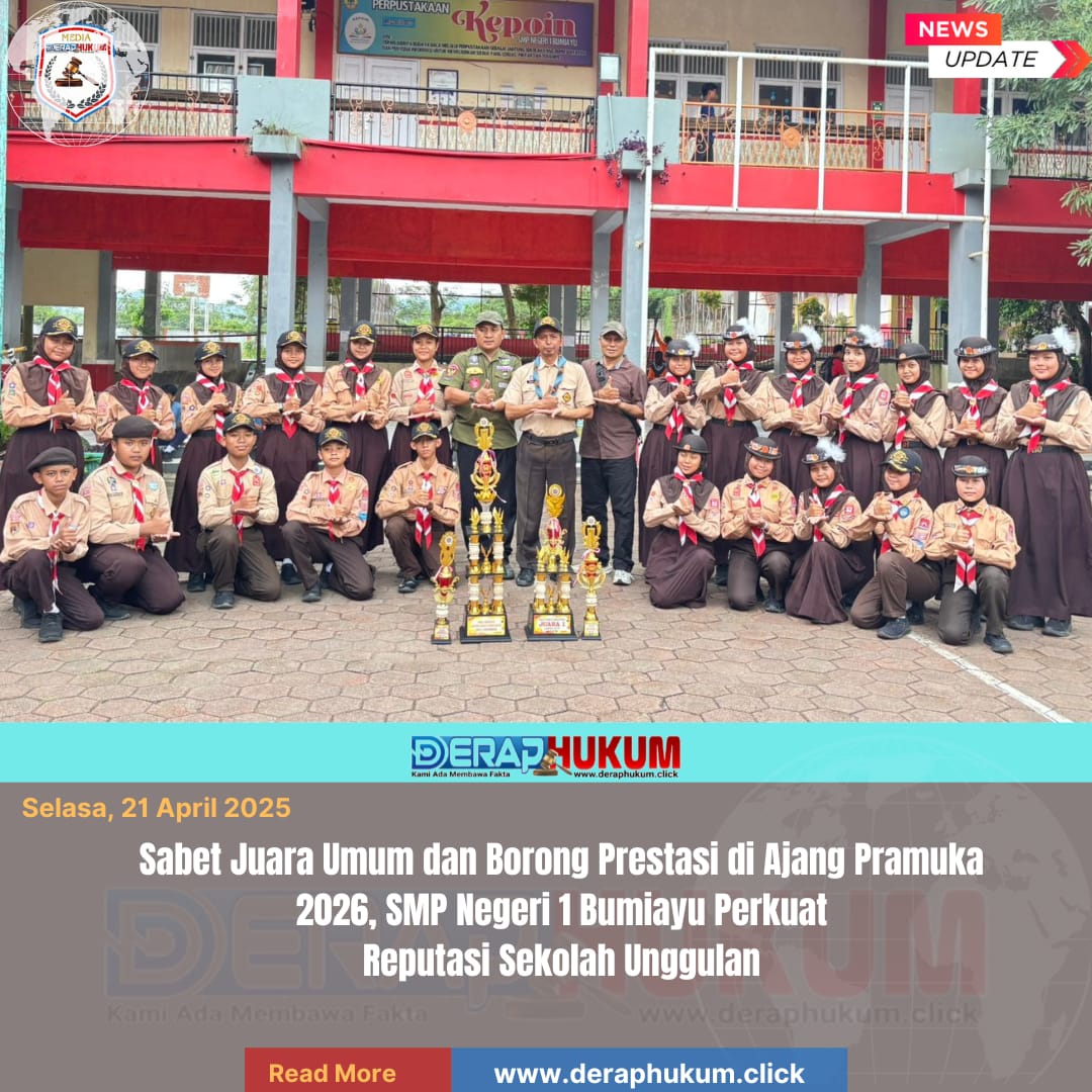 Brebes,Jawa Tengah | Deraphukum.click | SMP Negeri 1 Bumiayu Kabupaten Brebes, kembali menorehkan prestasi membanggakan di bidang kepramukaan sepanjang 2026.