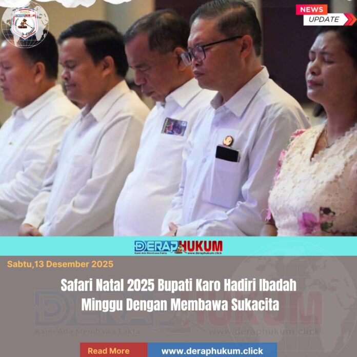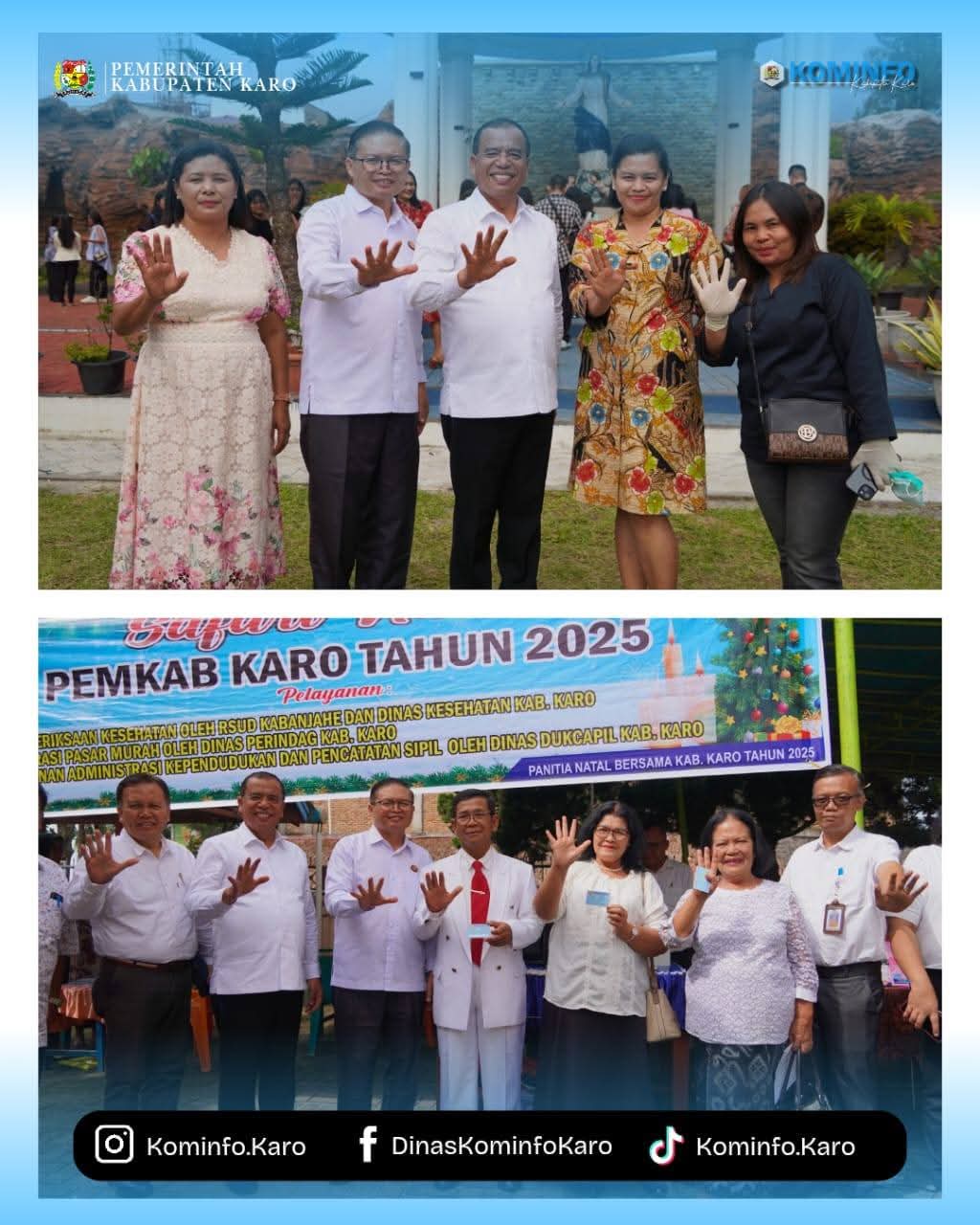 Pemerintah Kabupaten (Pemkab) Karo memulai rangkaian kegiatan Safari Natal Tahun 2025 dengan penuh sukacita dan semangat berbagi kasih. Bupati Karo, Brigjen Pol (Purn) Dr. dr. Antonius Ginting, Sp. OG., M.Kes., didampingi oleh Wakil Bupati, Komando Tarigan, S.P dan jajaran Organisasi Perangkat Daerah (OPD) terkait, menghadiri kebaktian Natal di GPdI Betesda dan Gereja Katolik Santa Perawan Maria Diangkat ke Surga sebagai salah satu lokasi Safari Natal, Minggu (07/12/2025).