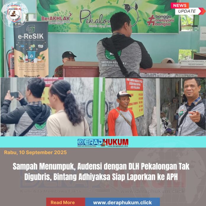 Kota Pekalongan, | Deraphukum.click | 9/9/2025 ,Permasalahan sampah di Kota Pekalongan terus menjadi sorotan. Ketua Umum Bintang Adhiyaksa, Didik Pramono S.H., menegaskan akan melaporkan Dinas Lingkungan Hidup (DLH) Kota Pekalongan ke aparat penegak hukum (APH) jika permohonan audensi pada 2 September 2025 lalu tidak ditindaklanjuti.