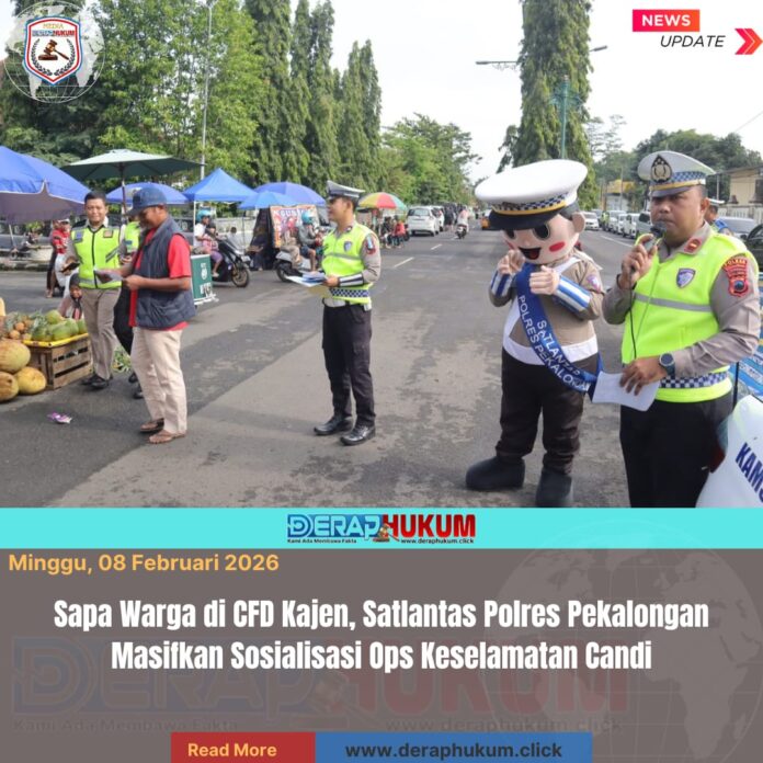 Pekalongan, Jawa Tengah | DerapHukum.click | Polres Pekalongan – Polda Jateng – Alun-alun Kajen yang tengah dipadati warga dalam kegiatan Car Free Day (CFD) mendadak riuh dengan kehadiran personil Satlantas Polres Pekalongan, Minggu (08/02/2026) pagi. Bukan untuk melakukan penindakan, para petugas kepolisian ini justru membagikan brosur edukasi di tengah kerumunan warga yang sedang berolahraga.