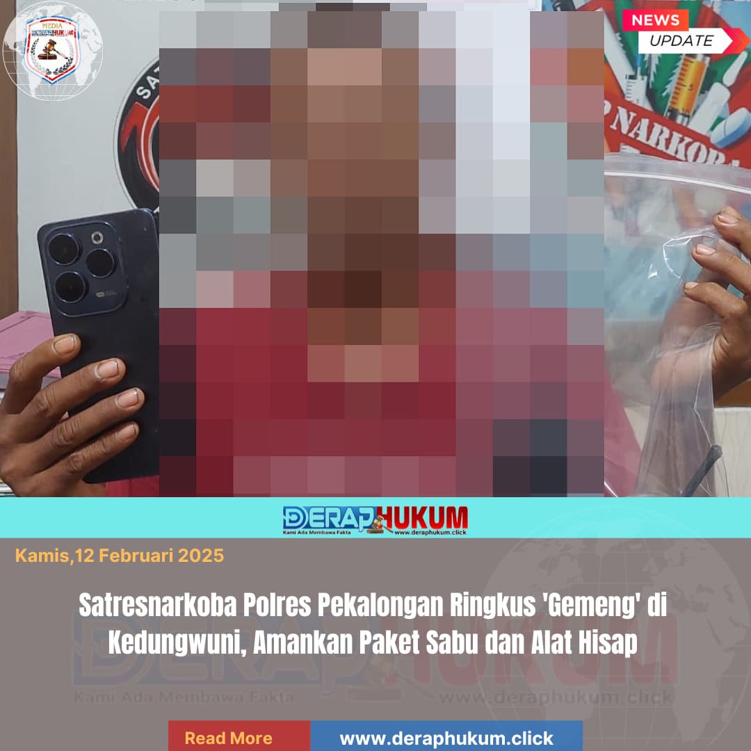 Editor : Humas Polres PekalonganSatresnarkoba Polres Pekalongan Ringkus ‘Gemeng’ di Kedungwuni, Amankan Paket Sabu dan Alat Hisap