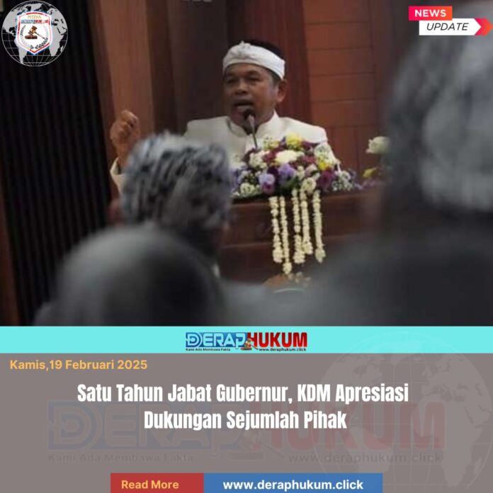 Bandung,Jawa Barat | Deraphukum.click | Gubernur Jawa Barat Dedi Mulyadi memberikan apresiasi kepada seluruh pihak yang telah bekerja sama dan memberi dukungan kepadanya selama satu tahun ia menjabat.