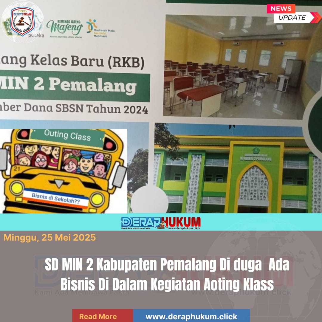 Masyarakat mengadukan dugaan adanya praktik bisnis dalam kegiatan outing class yang diselenggarakan oleh MIN 2 Pemalang. Aduan ini datang dari salah satu wali murid yang enggan disebutkan namanya. Menindaklanjuti laporan tersebut, awak media mendatangi MIN 2 Pemalang yang berlokasi di Jl. Lumba-Lumba No. 98C, Tanjungsari, Sugihwaras, Kec. Pemalang, Kabupaten Pemalang, Jawa Tengah, untuk mengonfirmasi kebenaran informasi tersebut.
