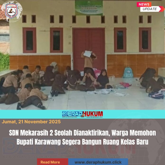 KARAWANG, Jawa Barat | DerapHukum.click | Kondisi memprihatinkan kembali dialami para siswa SDN Mekarasih 2, Kecamatan Banyusari, Kabupaten Karawang. Sudah bertahun-tahun sekolah ini mengalami kekurangan ruang kelas, namun hingga kini pembangunan ruang kelas baru tak kunjung direalisasikan. Akibatnya, para siswa terpaksa mengikuti kegiatan belajar di luar lingkungan sekolah.