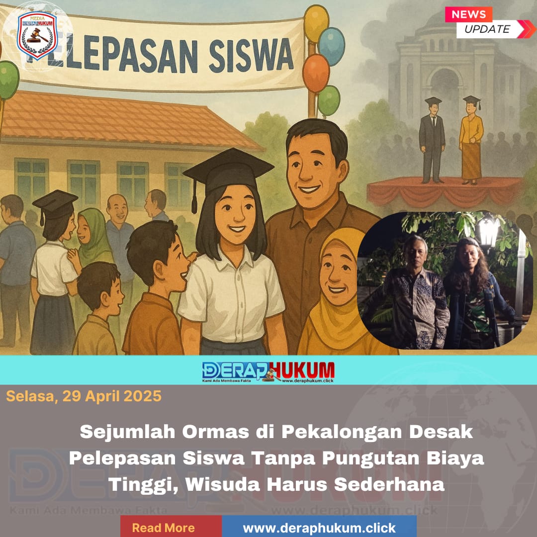 Pekalongan, Jawa Tengah | DerapHukum.Click | Menjelang kelulusan tahun ajaran 2024/2025, isu pelaksanaan wisuda di tingkat pendidikan dasar dan menengah kembali menjadi sorotan. Ketua Umum DPP FORMASI Pekalongan, Mustadjirin, menegaskan bahwa pelepasan siswa sebaiknya dilakukan secara sederhana, tanpa membebani orang tua atau wali murid.