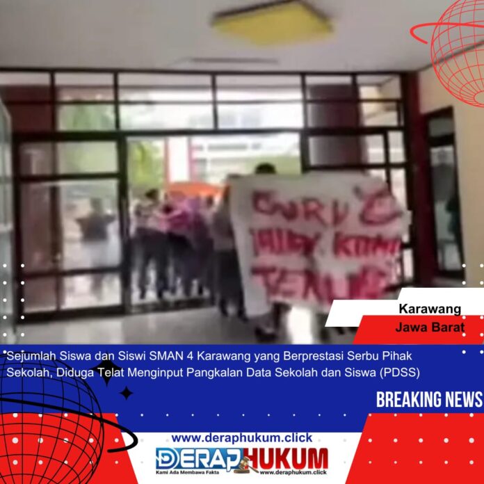 KARAWANG-JABAR | Deraphukum.click | SMAN 4 Karawang, Jawa Barat, diserbu ratusan siswa berprestasi lantaran kelalaian pihak sekolah yang diduga telat menginput Pangkalan Data Sekolah dan Siswa (PDSS) program Eligible Seleksi Nasional Berdasarkan Prestasi (SNBP) Tahun Ajaran 2024/2025.