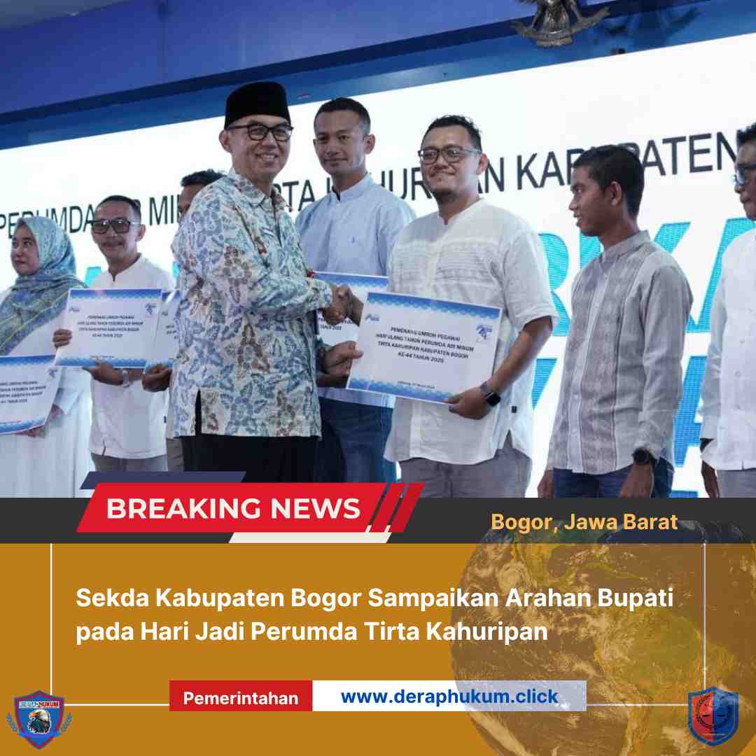 KAB. BOGOR,JABAR. | Deraphukum.click | Sekretaris Daerah (Sekda) Kabupaten Bogor Ajat Rochmat Jatnika menyampaikan sejumlah arahan Bupati Bogor Rudy Susmanto pada peringatan hari jadi ke-44, Perusahaan Umum Daerah (Perumda) Air Minum Tirta Kahuripan Kabupaten Bogor, di Aula Kantor Tirta Kahuripan, pada hari Jumat (07/03/2025).