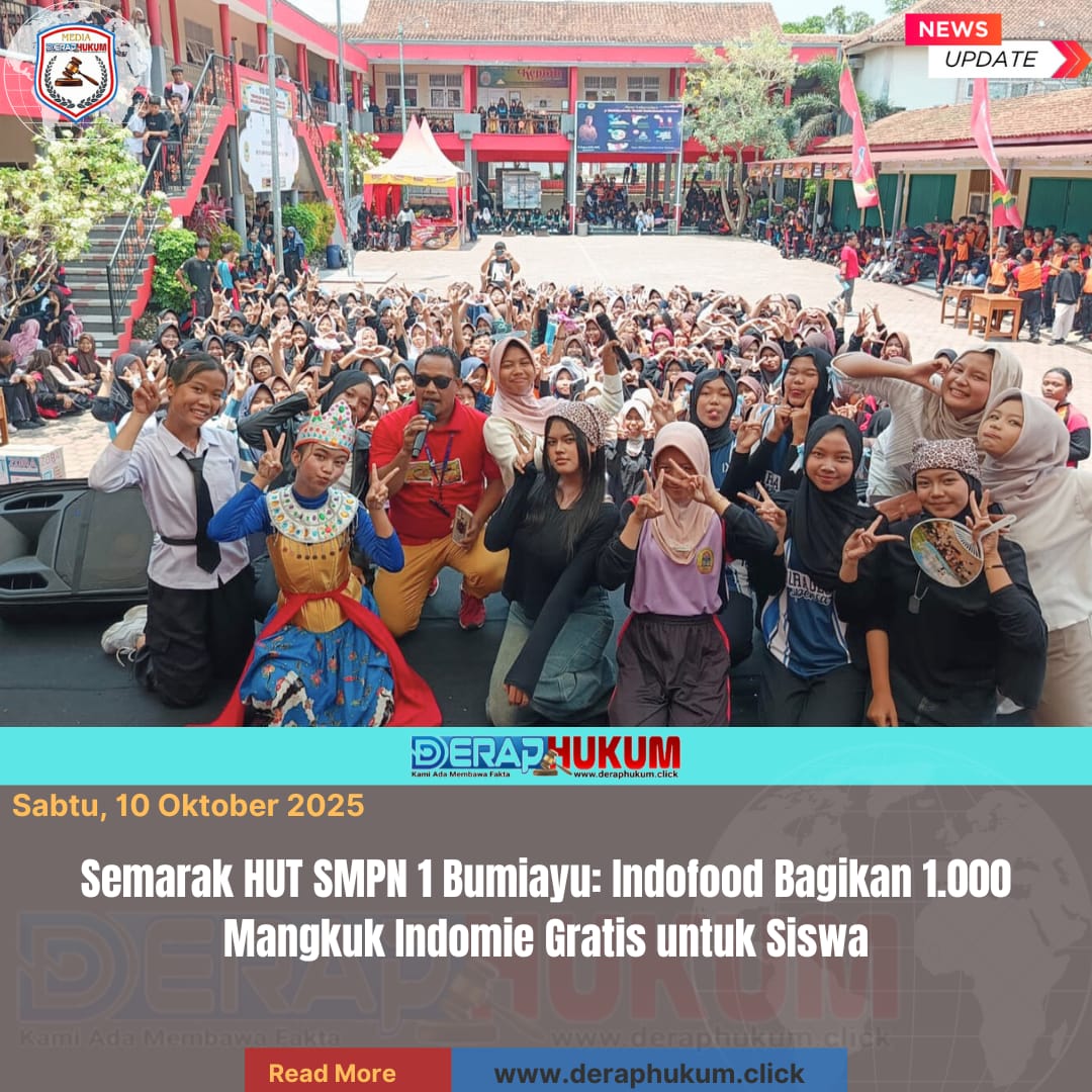 Brebes , Jawa Tengah | DerapHukum.click | Suasana semarak mewarnai peringatan Hari Ulang Tahun (HUT) ke-68 SMP Negeri 1 Bumiayu, Kabupaten Brebes, yang digelar pada Sabtu (11/10/2025). Ribuan siswa dan guru larut dalam keceriaan dan kebersamaan di halaman sekolah dalam acara yang penuh semangat tersebut.