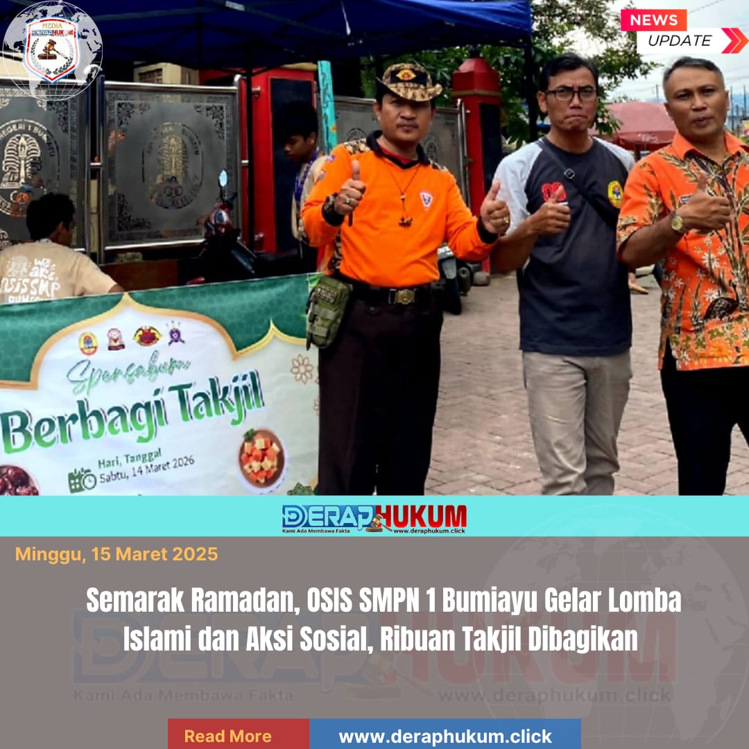 Brebes,Jawa Tengah | Deraphukum.click | Organisasi Siswa Intra Sekolah (OSIS) SMP Negeri 1 Bumiayu (Spensabum), Kecamatan Bumiayu, Kabupaten Brebes, menyelenggarakan rangkaian kegiatan Safari Ramadan 1447 H/2026 M yang diisi dengan berbagai aktivitas religius, edukatif, dan sosial selama bulan suci Ramadan.