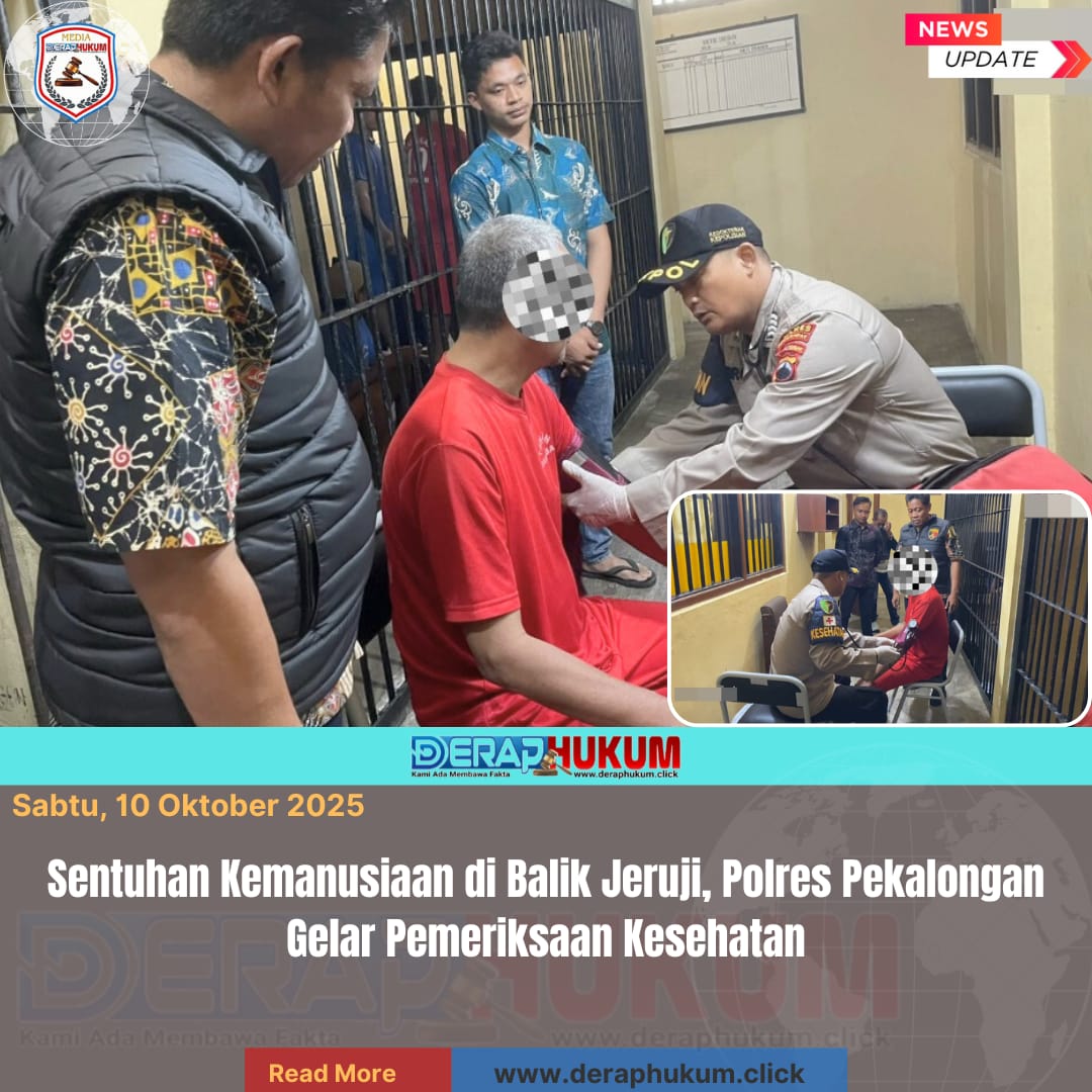 PEKALONGAN, Jawa Tengah | DerapHukum.click | Polres Pekalongan Polda Jateng – Polres Pekalongan menunjukkan komitmennya terhadap nilai-nilai kemanusiaan dengan menggelar pemeriksaan kesehatan rutin bagi para tahanan di Rumah Tahanan (Rutan) Polres Pekalongan. Kegiatan ini digelar sebagai bentuk kepedulian institusi terhadap hak-hak dasar para tahanan, khususnya di bidang kesehatan.