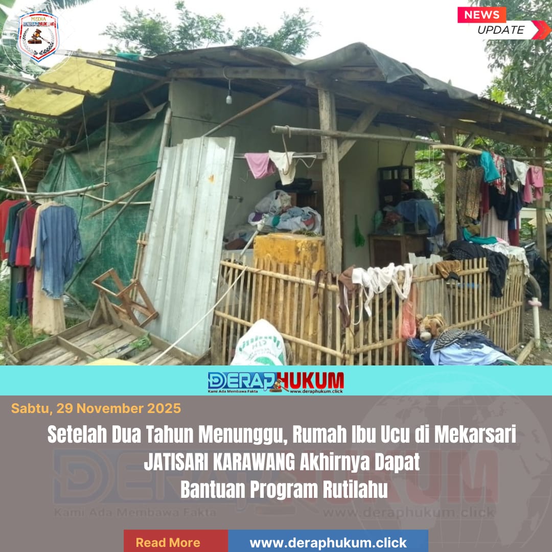 Sabtu, 29 November 2025 — Penantian panjang keluarga penerima manfaat di wilayah Kp. Bakan Ngantay RT 04/06, Desa Mekarsari, Kecamatan Jatisari, Kabupaten Karawang akhirnya terbayar. Rumah milik Ibu Ucu yang selama ini masuk kategori Rumah Tidak Layak Huni (Rutilahu), resmi mendapatkan bantuan perbaikan melalui program Bantuan Stimulan Perumahan Swadaya (BSPS).