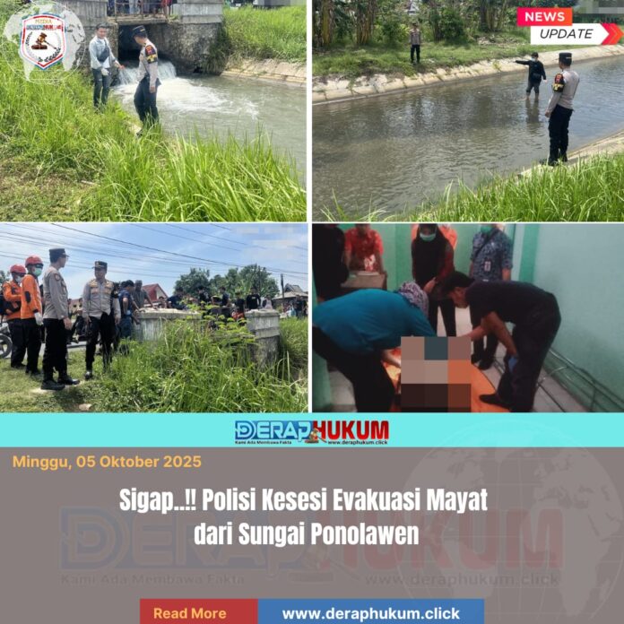 Pekalongan,Jawa Tengah | Deraphukum.click | Polres Pekalongan – Polda Jateng – Warga Kecamatan Kesesi, Kabupaten Pekalongan, dikejutkan dengan penemuan sesosok mayat pria di aliran Sungai Ponolawen pada Sabtu (04/10/2025) siang. Korban diketahui bernama Miftah (69), seorang warga asal Dukuh Jlubang, Desa Pantirejo, Kesesi.