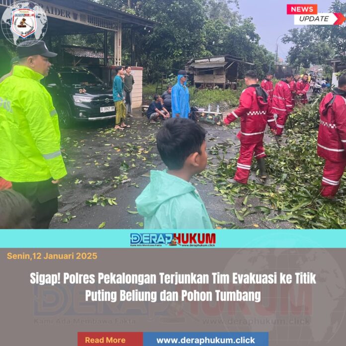 Pekalongan,Jawa Tengah | Deraphukum.click | Polres Pekalongan – Polda jateng – Cuaca ekstrem melanda wilayah Kabupaten Pekalongan pada Sabtu (10/1/2026) sore. Hujan deras yang disertai angin puting beliung mengakibatkan kerusakan puluhan rumah warga serta sejumlah pohon tumbang yang menutup akses jalan hingga menimpa kendaraan.