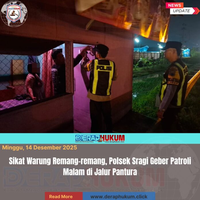 PEKALONGAN, Jawa Tengah | Deraphukum.click | Polsek Sragi, Polres Pekalongan, Polda Jawa Tengah, meningkatkan patroli Harkamtibmas pada malam akhir pekan dengan fokus menertibkan potensi gangguan keamanan dan ketertiban masyarakat (kamtibmas), khususnya di warung kopi sepanjang jalur Pantura.