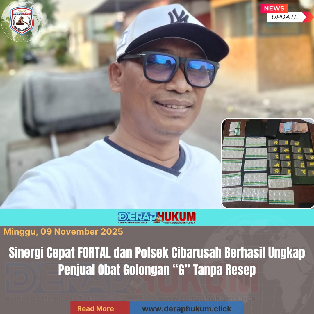 Bekasi, Jawa Barat | DerapHukum.click | 8 November 2025, Sinergi cepat antara Forum Masyarakat Anti Obat Terlarang (FORTAL) dan Polsek Cibarusah membuahkan hasil. Dua orang penjual obat-obatan keras golongan “G” tanpa resep dokter berhasil diamankan di depan Gerbang Perumahan Mutiara 2, Desa Wibamulya, Kecamatan Cibarusah, Kabupaten Bekasi, Sabtu sore (8/11/2025).