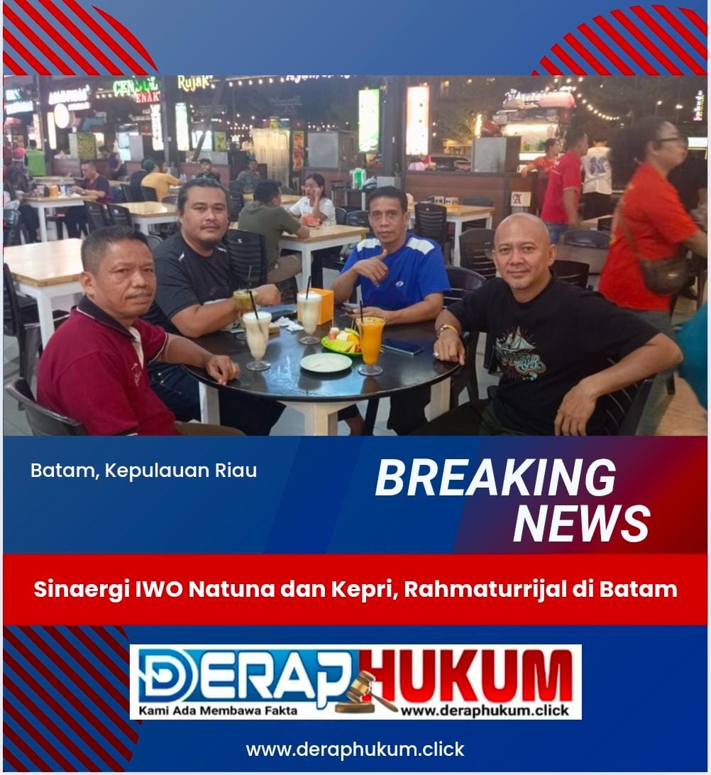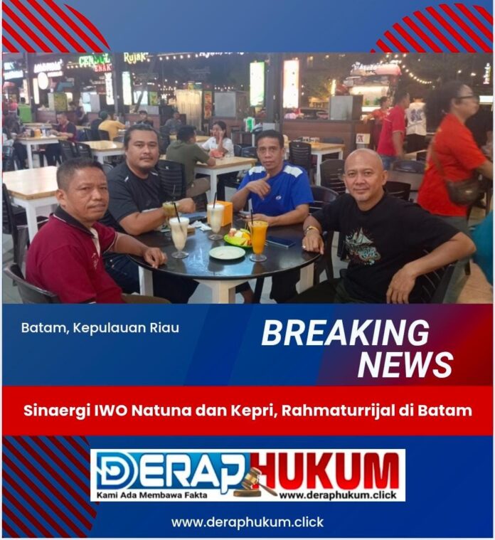 BATAM | Deraphukum.click | 10 Desember 2024 – Pembina Ikatan Wartawan Online (IWO) Indonesia Natuna, Rahmaturrijal, bertemu dengan jajaran pengurus IWO Indonesia Kepulauan Riau untuk membahas penguatan organisasi dan peningkatan kualitas pemberitaan. Pertemuan ini berlangsung pada Selasa sore di Nagoya Food Court, Batam, dan dihadiri oleh Ketua IWO Kepri, Nursalim Turatea; Sekretaris IWO Kepri, Daniel Febrianti; serta Wakil Ketua IWO Kepri, Azis Nasution.