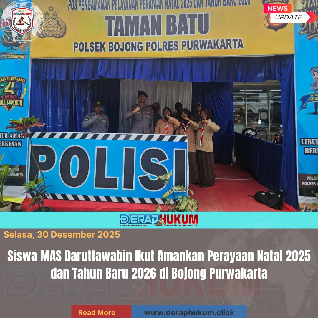 PURWAKARTA, Jawa Barat | DerapHukum.click | Dalam rangka menyambut Perayaan Natal 2025 dan Tahun Baru 2026, siswa-siswi Madrasah Aliyah Swasta (MAS) Daruttawabin melaksanakan kegiatan pengamanan di wilayah Kecamatan Bojong, Kabupaten Purwakarta, Selasa (30/12/2025).