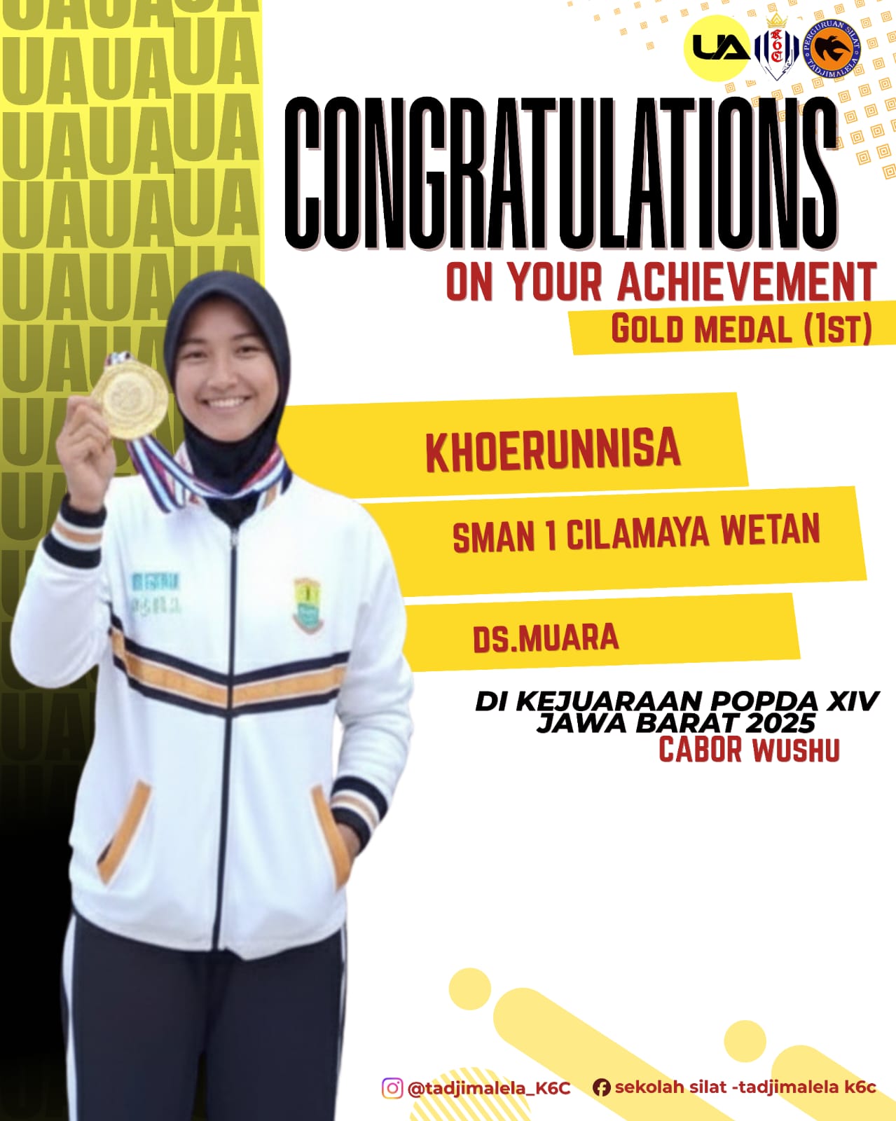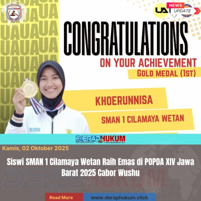 Karawang, Jawa Barat | Deraphukum.click | Kabar membanggakan datang dari dunia olahraga pelajar Karawang. Khoerunnisa, siswi SMAN 1 Cilamaya Wetan, sukses meraih medali emas pada ajang Pekan Olahraga Pelajar Daerah (POPDA) XIV Jawa Barat 2025 di cabang olahraga Wushu.