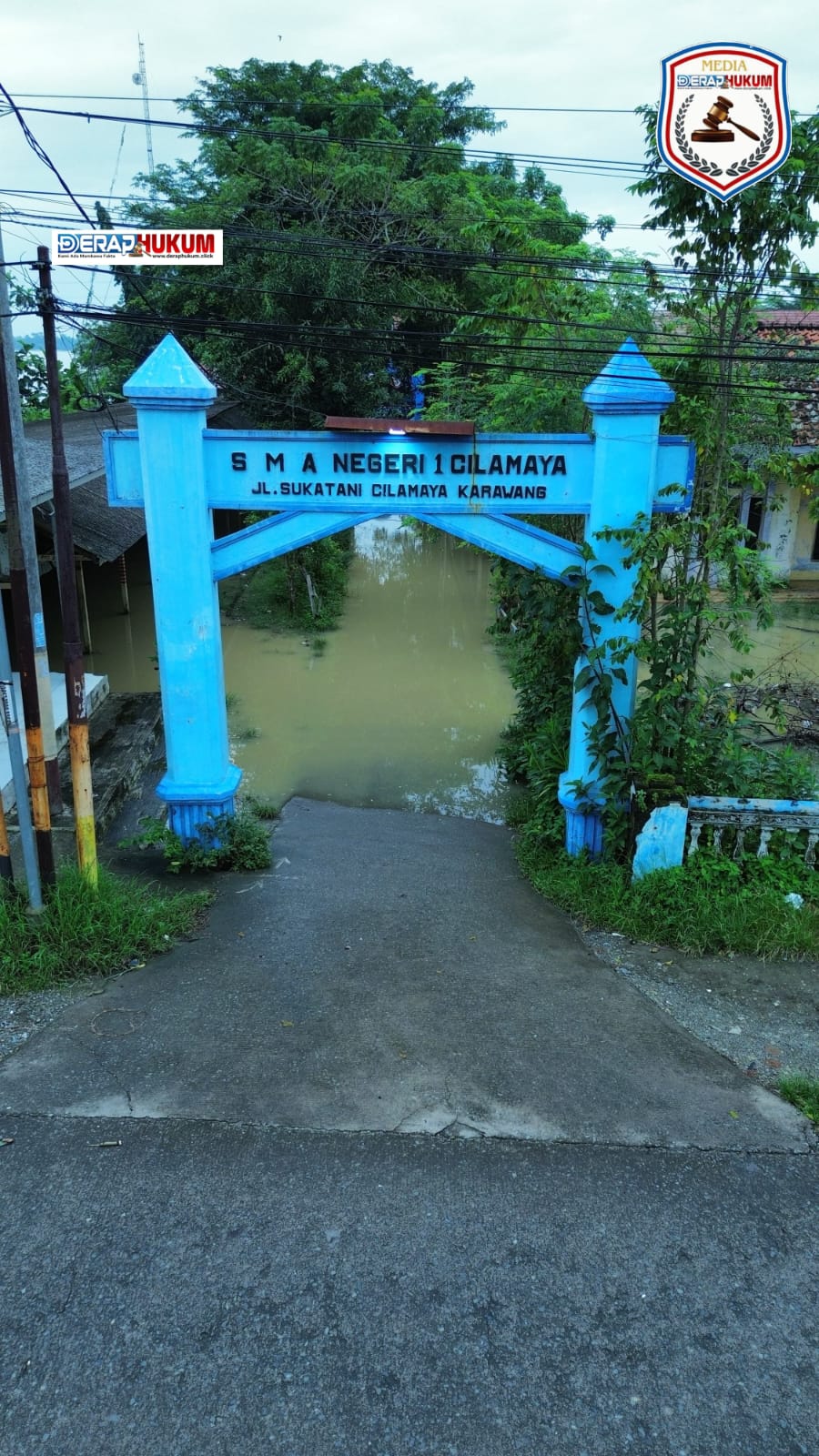 Karawang, Jawa Barat | Deraphukum.click | SMA Negeri 1 Cilamaya kembali terendam banjir. Peristiwa ini bukan yang pertama, melainkan sudah menjadi langganan hampir setiap musim hujan. Kondisi sekolah yang dikelilingi area persawahan serta berada di dataran rendah diduga menjadi salah satu faktor utama penyebab genangan air sulit surut.
