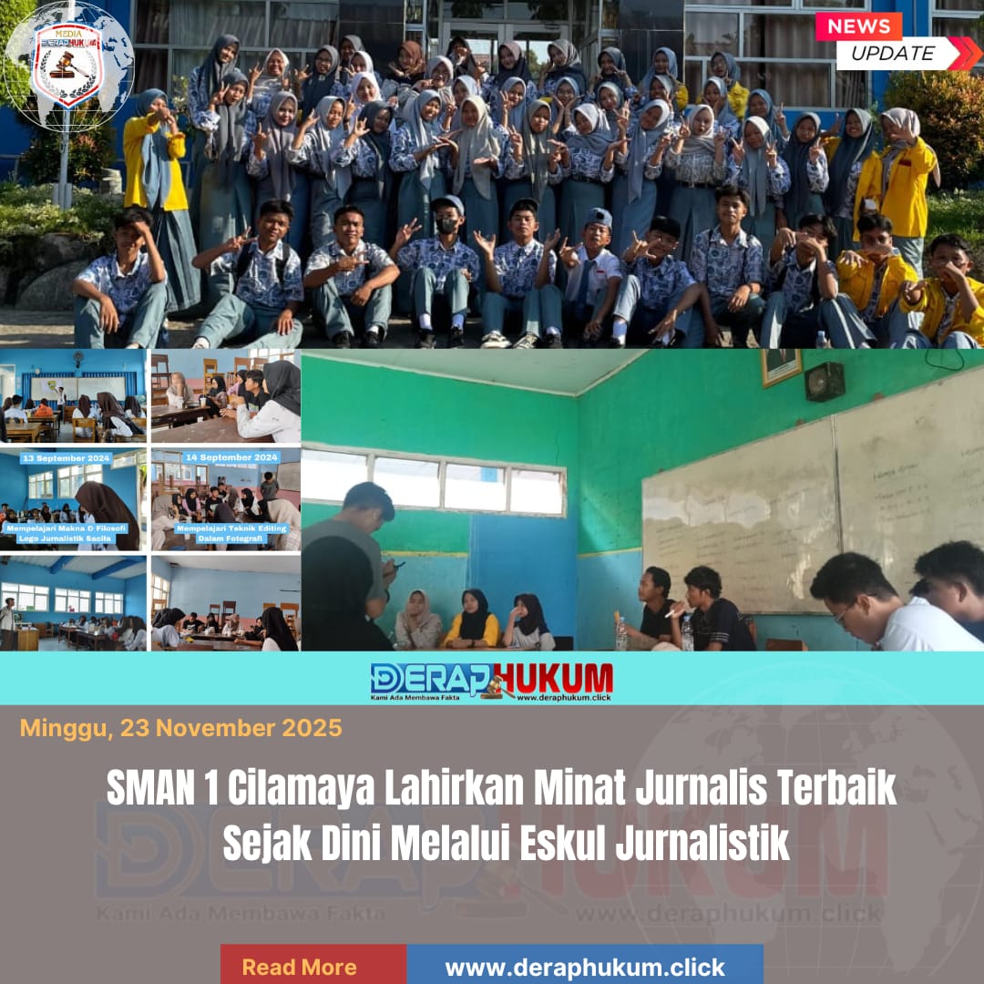 Karawang,Jawa Barat | Deraphukum.click | SMAN 1 Cilamaya terus menunjukkan komitmennya dalam mengembangkan potensi peserta didik, baik di bidang akademik maupun non-akademik. Salah satu langkah nyata tersebut adalah dengan dibukanya Ekstrakurikuler (Eskul) Jurnalistik yang bertujuan melahirkan minat serta mencetak calon jurnalis muda sejak dini.