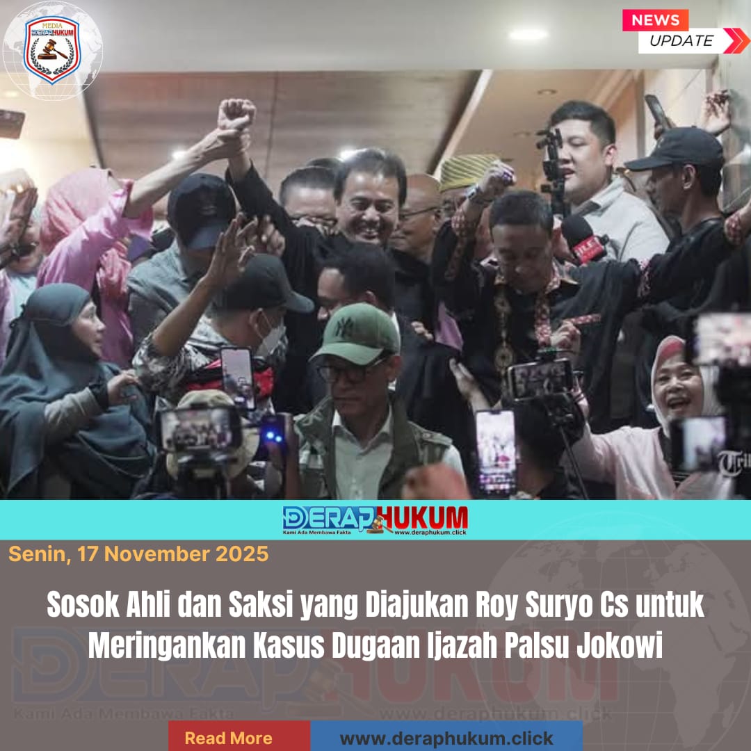 Jakarta, DKI | Deraphukum.click | Roy Suryo, Rismon Sianipar, dan Tifauzia Tyassuma atau Dokter Tifa, yang ditetapkan sebagai tersangka dalam kasus tudingan ijazah palsu Presiden ke-7 RI Joko Widodo (Jokowi), belum dilakukan penahanan oleh kepolisian. Ketiganya diketahui mengajukan permohonan pemeriksaan ahli dan saksi yang dinilai dapat meringankan.