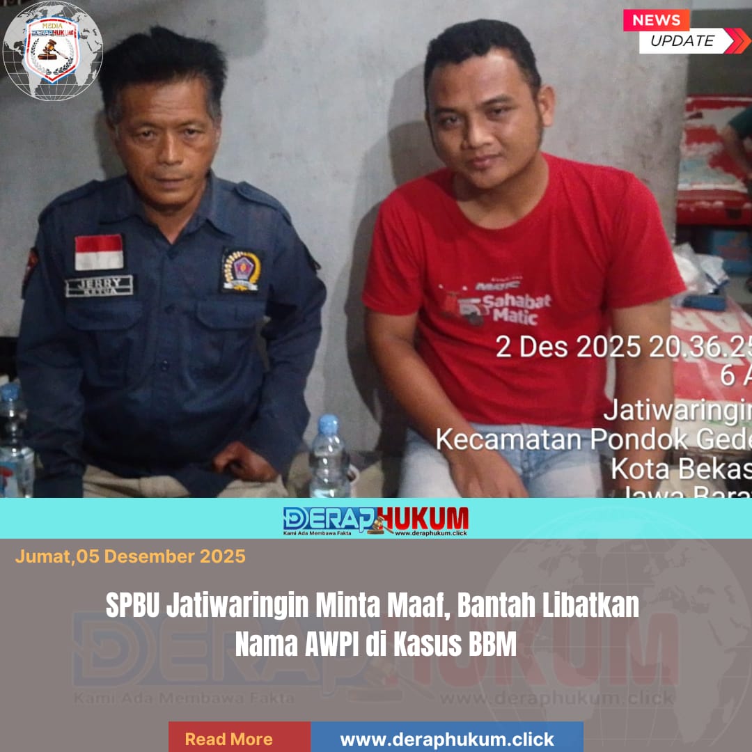 BEKASI, | Deraphukum.click | Pengawas SPBU 34.171.28 Jalan Raya Jatiwaringin, Pondok Gede, Kota Bekasi, meminta maaf dan meluruskan pemberitaan terkait penyebutan nama Asosiasi Wartawan Profesional Indonesia (AWPI), dalam kasus pengisian bahan bakar minyak (BBM) bersubsidi secara tidak wajar.