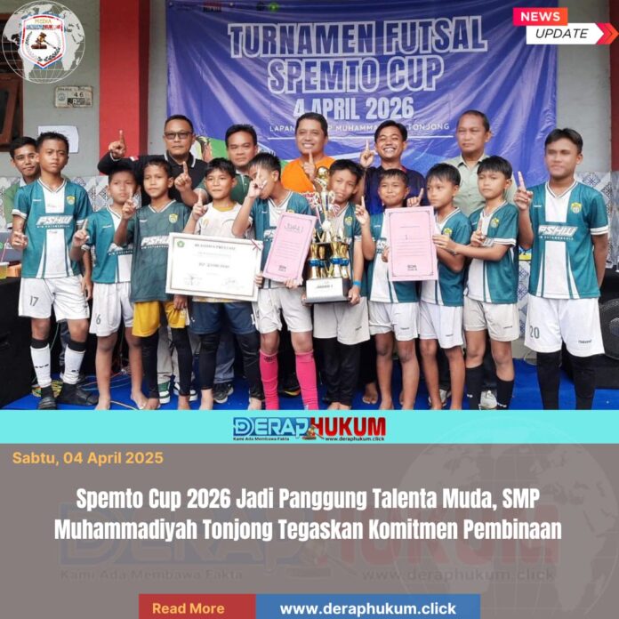 Brebes,Jawa Tengah | Deraphukum.click | SMP Muhammadiyah Tonjong sukses menggelar Turnamen Futsal Spemto Cup 2026 sebagai upaya menjaring dan mengembangkan potensi atlet futsal sejak usia dini.