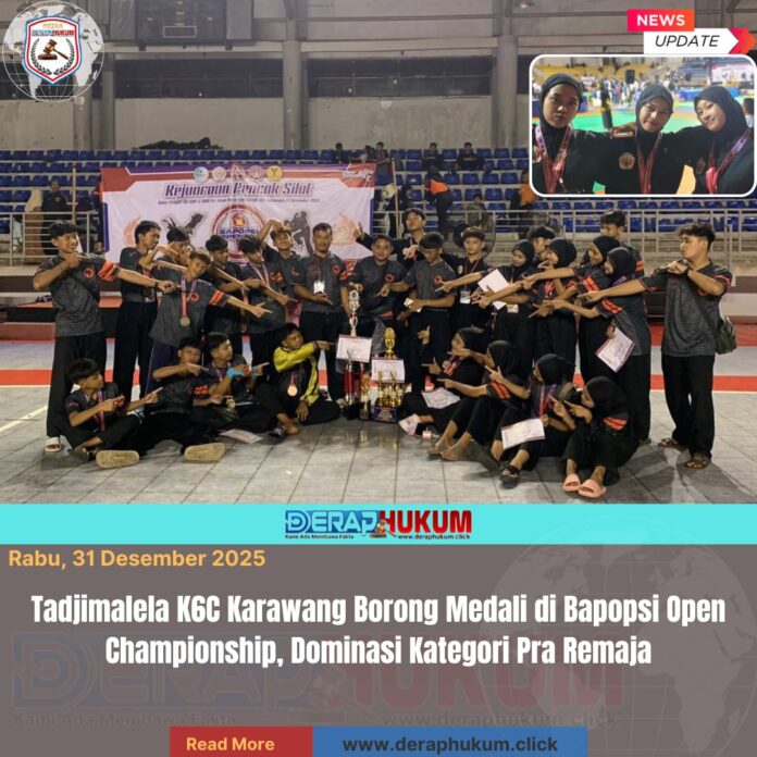 Karawang, Jawa Barat | DerapHukum.click | Prestasi gemilang kembali ditorehkan Perguruan Silat Tadjimalela K6C Karawang dalam ajang Bapopsi Open Championship yang digelar di GOR ITB Jatinangor, Sumedang. Melalui atlet-atlet binaan dari berbagai sekolah dan lembaga pendidikan yang ditangani, Tadjimalela K6C Karawang berhasil memborong total 49 medali dari berbagai kategori pertandingan.