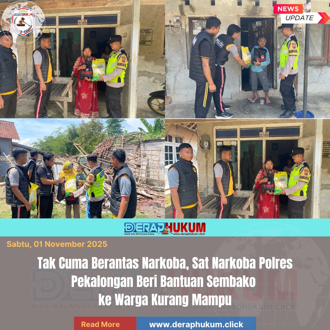 Pekalongan,Jawa Tengah | Deraphukum.click | Polres Pekalongan – Polda Jateng – Satuan Reserse Narkoba (Satresnarkoba) Polres Pekalongan tak hanya fokus pada penindakan kasus narkotika. Hari ini, Jumat (31/10/2025), jajaran Satresnarkoba membuktikan komitmen mereka melalui kegiatan bakti sosial dengan mengusung tagline “Polisi Penolong Masyarakat.”