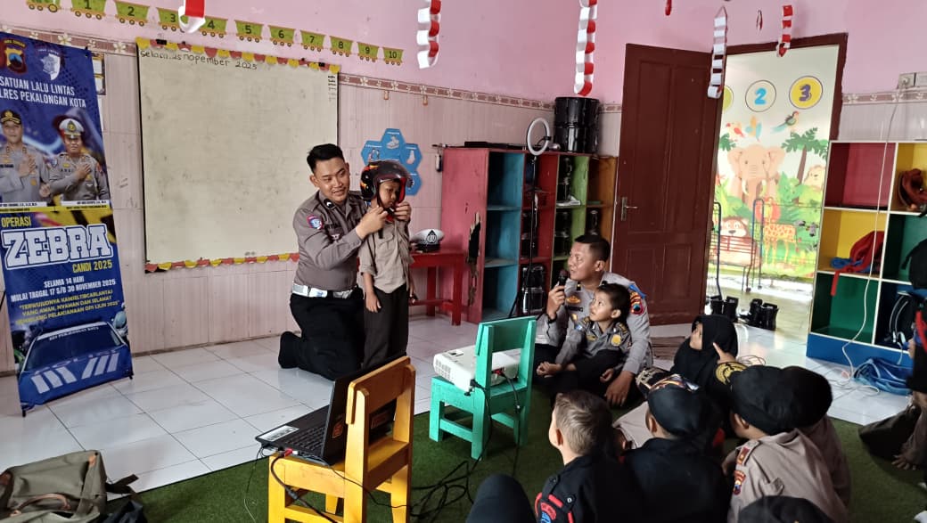 PEKALONGAN KOTA, Jawa Tengah | DerapHukum.click | Polres Pekalongan Kota, Polda Jateng, terus menggencarkan edukasi keselamatan berkendara sejak usia dini. Pada Rabu (26/11/2025), Subsatgas Dikmas Lantas Ops Zebra Candi 2025 melaksanakan Pembelajaran Pendidikan Lalu Lintas bagi siswa-siswi TK Kemala Bhayangkari 20 Cabang Pekalongan Kota.