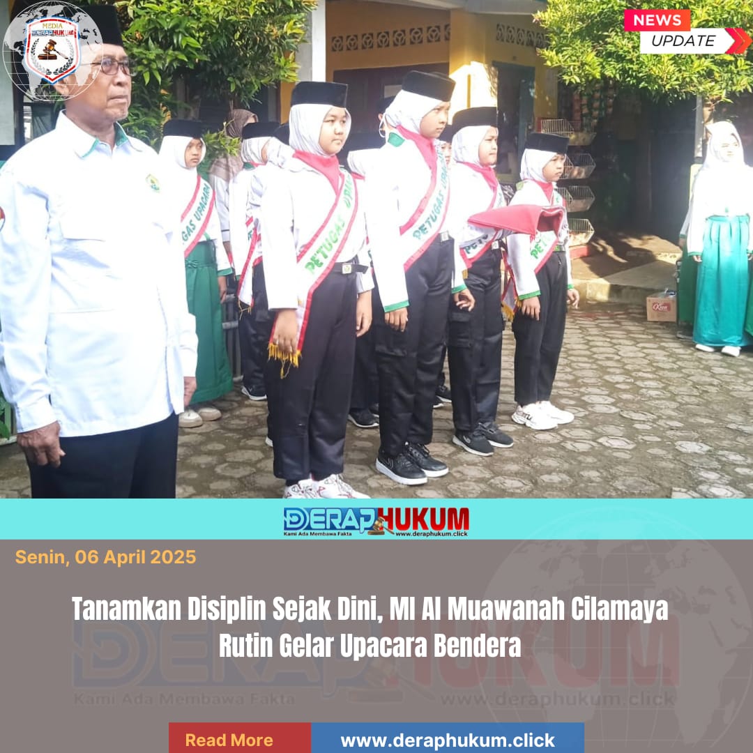 Karawang,Jawa Barat | Deraphukum.click | Sabtu, 06 April 2026 – MI Al Muawanah yang berlokasi di Desa Cilamaya, Kecamatan Cilamaya Wetan, Kabupaten Karawang secara rutin melaksanakan kegiatan upacara bendera setiap hari Senin di halaman sekolah.